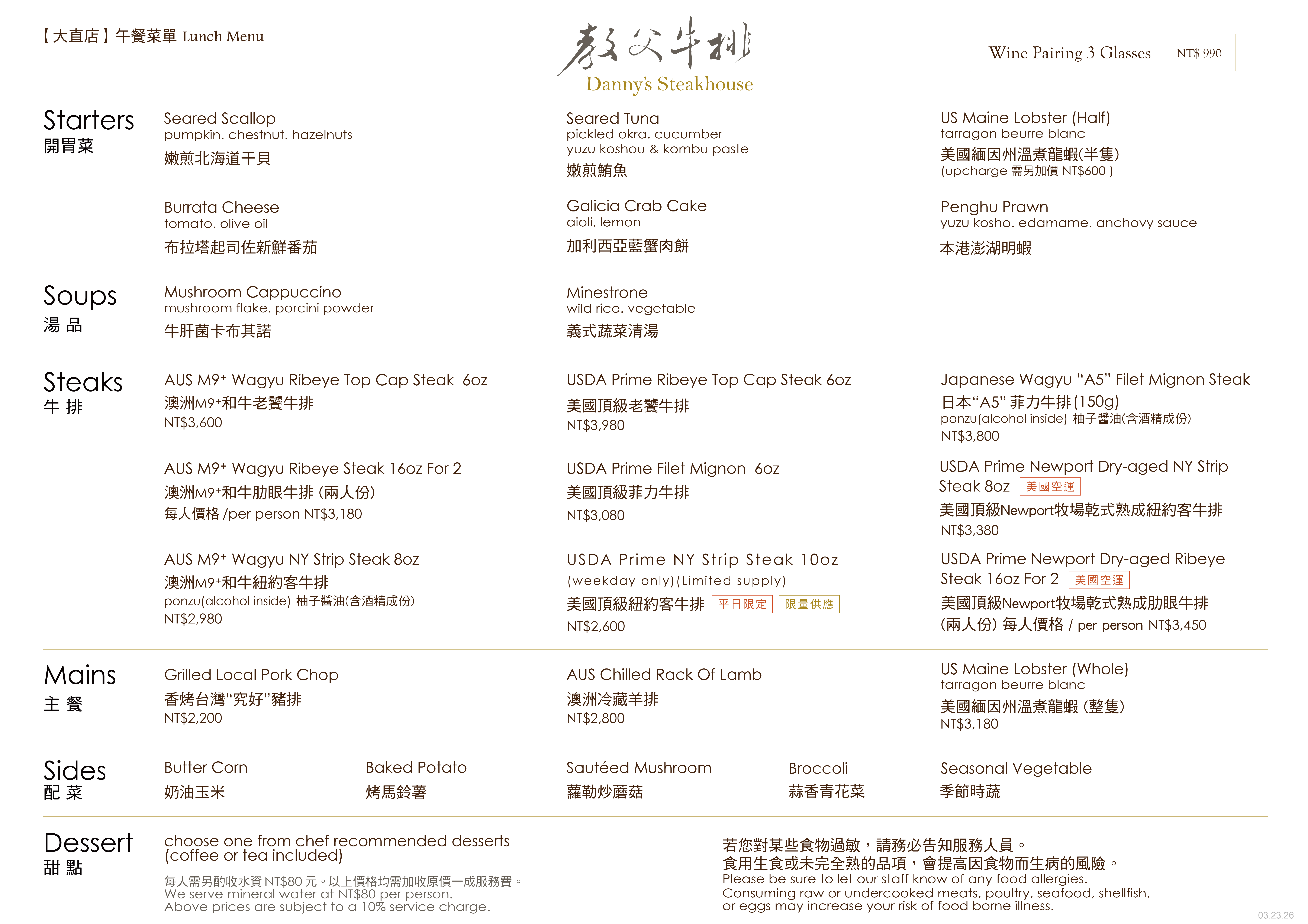 Danny's Steakhouse 是鄧有癸最具代表性的品牌,以老饕牛排聞名,並採用極致的烹調技術來確保每塊牛排的完美熟成。餐廳提供多道經典西餐,搭配高品質服務,成為台灣米其林餐廳的一部分。