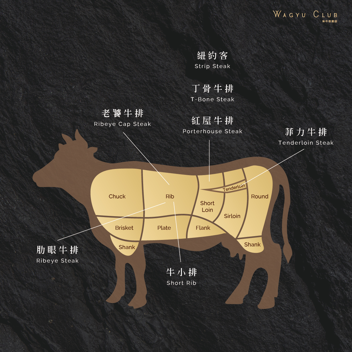 - 部位:通常是指牛隻後腰脊部兩側的後腰脊肉,這塊的肉質運動量較多。