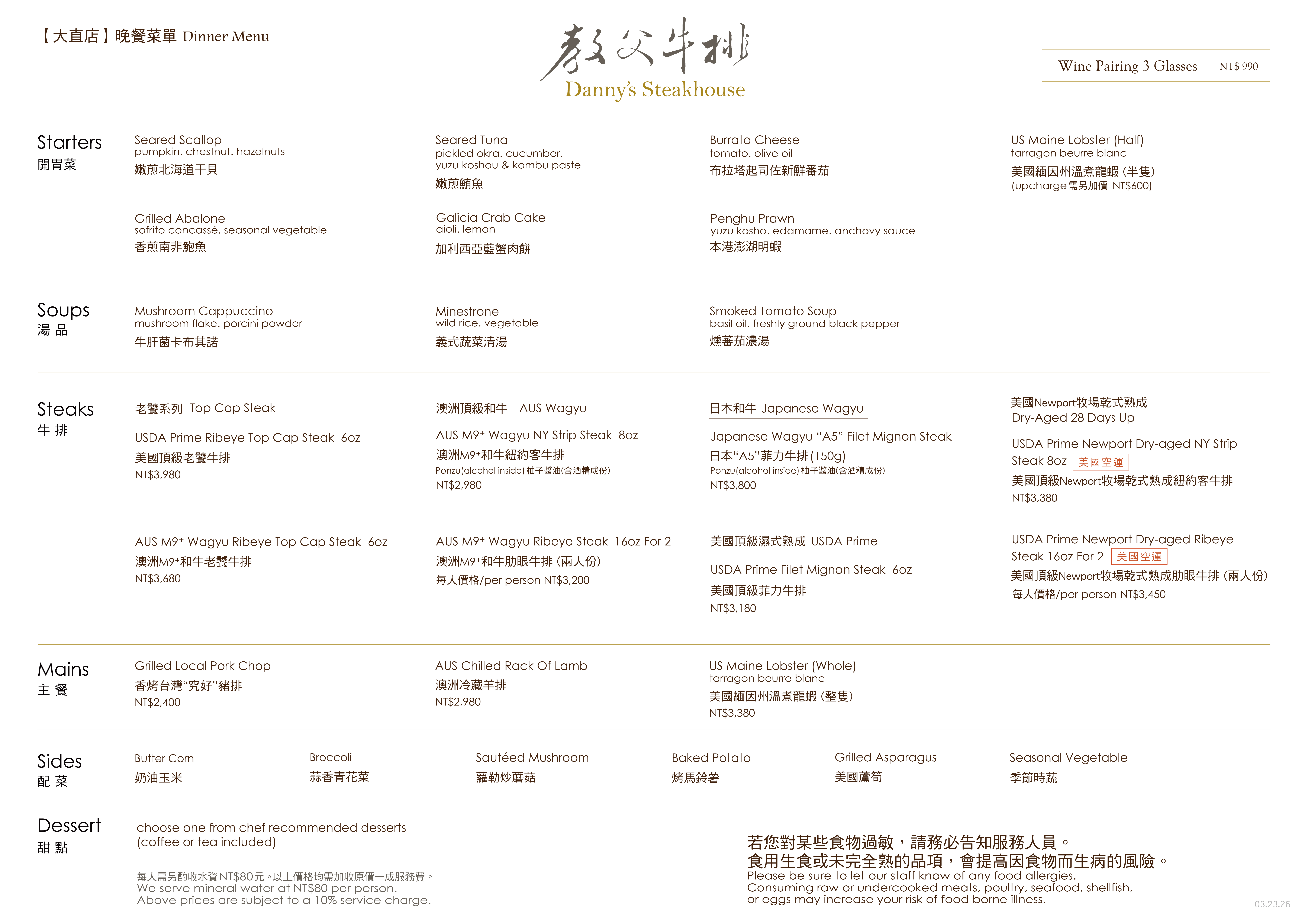 Danny's Steakhouse 是鄧有癸最具代表性的品牌,以老饕牛排聞名,並採用極致的烹調技術來確保每塊牛排的完美熟成。餐廳提供多道經典西餐,搭配高品質服務,成為台灣米其林餐廳的一部分。